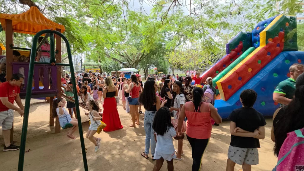 O parque foi transformado em um grande espaço de lazer com brinquedos infláveis, pula-pula, peças teatrais, show de animadores, corte de cabelo, distribuição de brindes, pipoca, algodão doce, picolé, açaí, bolos, milho e muito mais. Toda a estrutura foi pensada para garantir diversão e segurança, mas também saúde e bem-estar.
